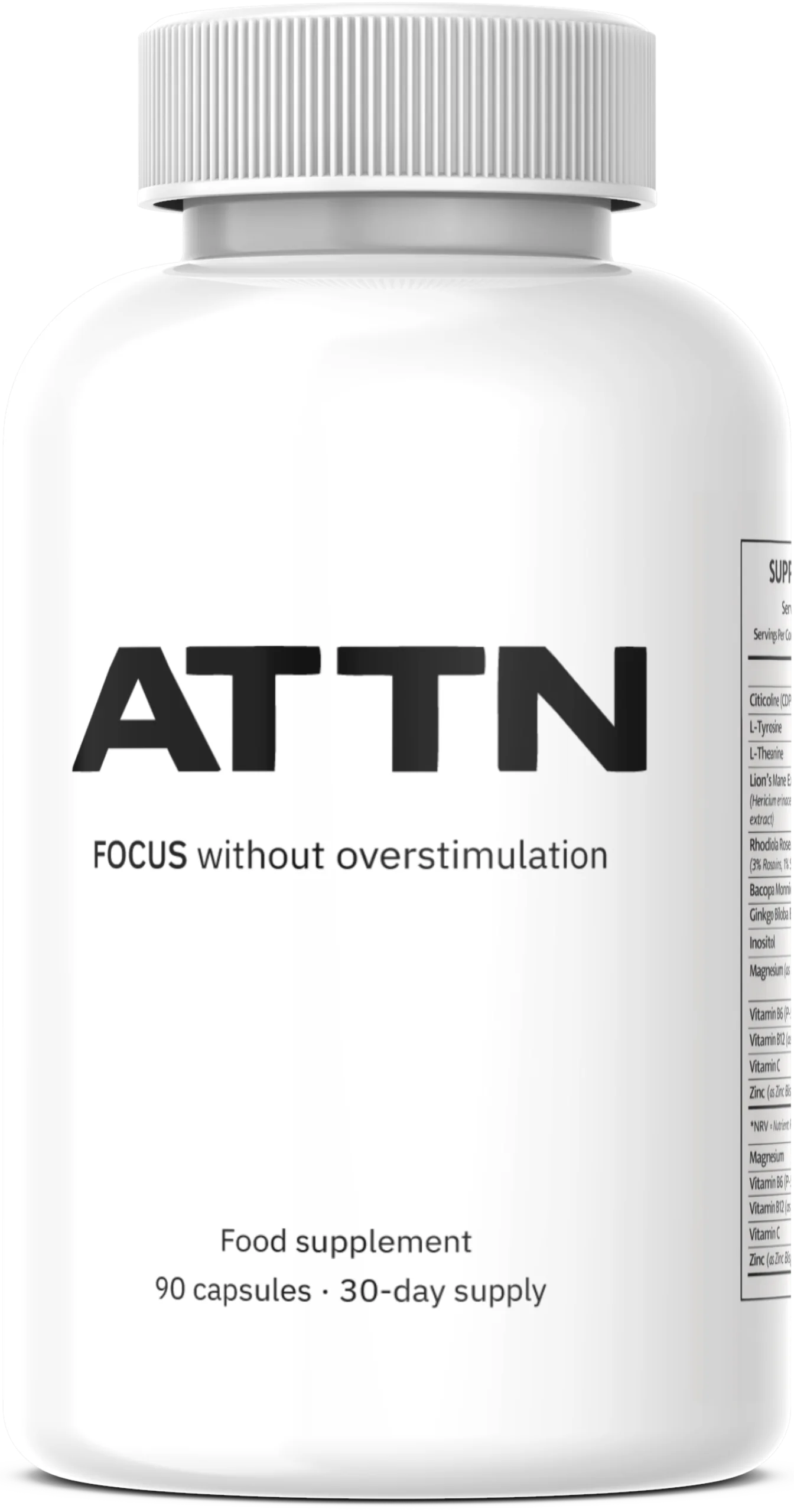 ATTN is formulated with carefully selected ingredients that work together to support focus, mental energy, and cognitive consistency — without caffeine or overstimulation.