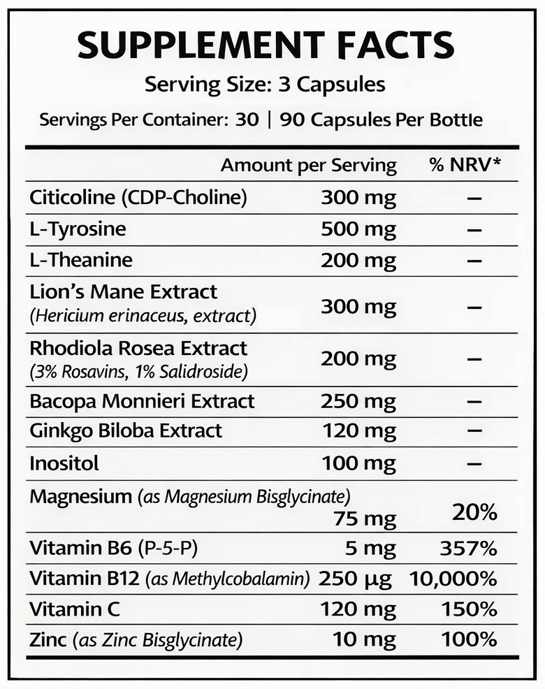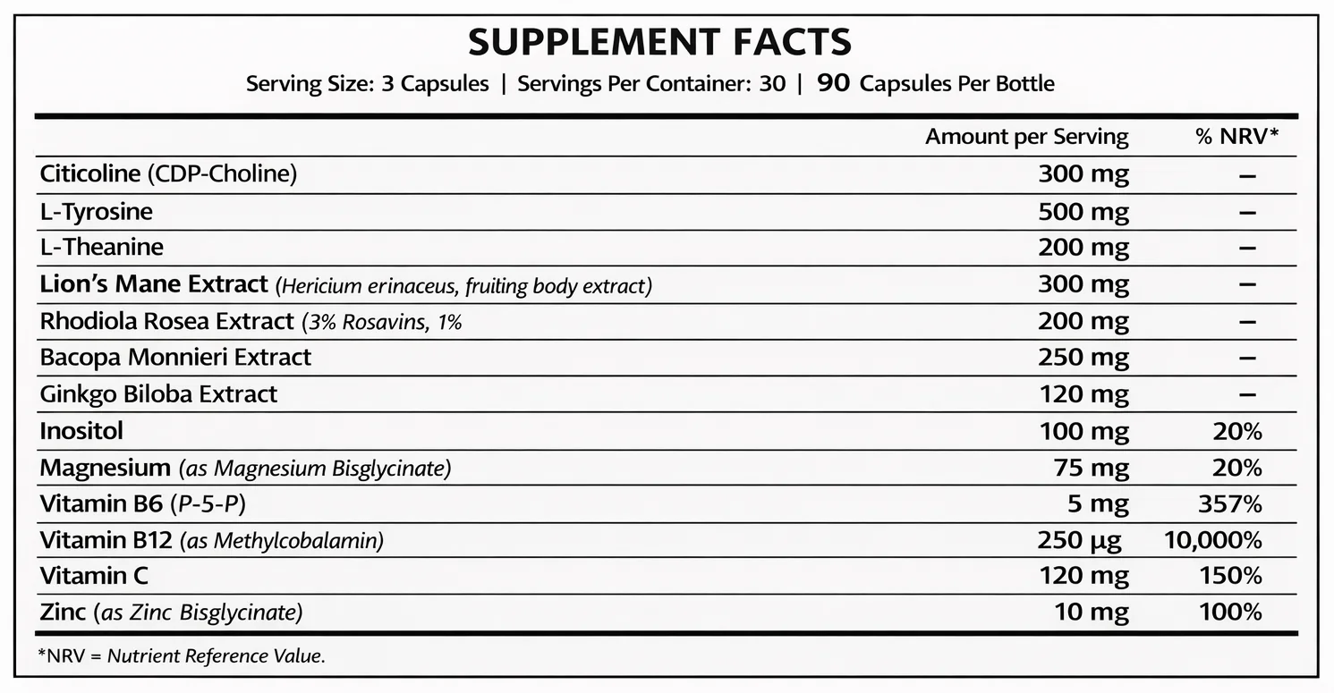 No proprietary blends. No hidden compounds. Every ingredient and dosage is fully disclosed — because focus improves when trust comes first.